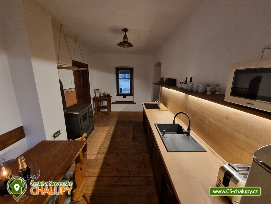 Wellness glamping v údolí říčky Ostružná nedaleko Sušice. Wellness zahrnuje (Finská sauna s nádherným výhledem, ochlazovací káď a vyhřívaný koupací sud s vířivkou). Glamping - Bývalý strážní domek (tzv. wechtr) z roku 1880 jsme upravili tak, abyste byli v maximálním možném komfortu, zároveň však na Vás dýchne ojedinělá historická atmosféra tohoto magického místa. Nacházíte se samozřejmě v soukromí, klidu a přírodě. Nachází se v romantickém údolí říčky Ostružná, kterým vede železniční trať z Klatov do Sušice, kudy projíždí lokálky, s jejichž provozem je nutno počítat (v noci vlaky nejezdí). Glamping tvoří samotný domek a wellness zóna. Autem dojedete až k objektu, kde je pohodlné stání pro vozidla. Pojďme si představit jednotlivé části glampingu: WECHTR - Wechtr má vstupní předsíňku, kuchyni, ložnici a koupelnu. V kuchyni jsou kamna na dřevo, jejichž součástí je i trouba a plotna. Oheň v kamnech Vám vykouzlí neuvěřitelně útulnou atmosféru. V kuchyňce naleznete samozřejmě nádobí, příbory, koutek pro přípravu kávy s kávovarem, lednici, mikrovlnnou troubu, topinkovač a rychlovarnou konvici. V ložnici najdete velkou pohodlnou postel s nejlepšími matracemi, polštáři a přikrývkami. V koupelně, kde je WC, umyvadlo a vana, najdete i fén Valera. Součástí wechtru je venkovní posezení kryté přístřeškem. Po celém objektu je k dispozici Wi-Fi připojení. WELLNESS Finská sauna s elektrickými kamny a nádherným výhledem na vzrostlé stromy, které Vás obklopují, obrovská ochlazovací káď a koupací sud jsou zárukou dokonalé regenerace. Ochlazovací káď je hned při východu ze sauny (v extrémních mrazech ochlazovací káď z technických důvodů nenapouštíme). Voda v koupacím sudu s vířivkou a osvětlením se ohřívá pomocí kamen na dřevo. Jedinečným zážitkem je noční koupání s hvězdami nad hlavou. V blízkém okolí ubytování najdete řadu zajímavých cílů – hrad Velhartice, hrad Rabí, tvrz Kašovice, zámek Hrádek, zámek Nemilkov, tvrz Svojšice, hrad Kašperk, rozhlednu Svatobor a v neposlední řadě město Sušici. Rána zde vítají jemným světlem a někdy i lehkou mlhou nad krajinou, večery jsou tiché a klidné. Perfektní místo pro zpomalení, relax a načerpání nové energie.