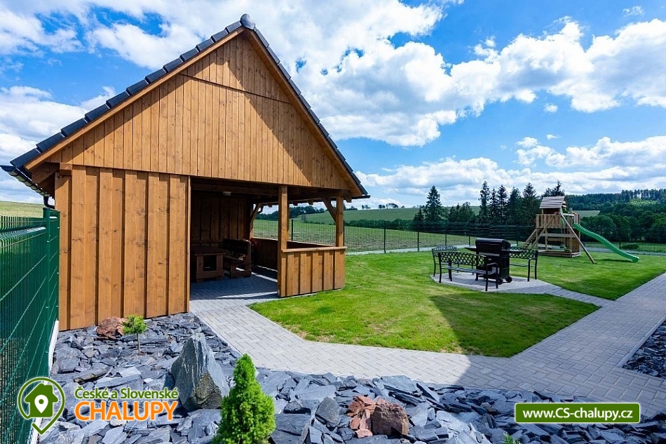 Wellness roubenka se saunou a koupacím sudem v malebné krajině Nízkého Jeseníku - Albrechtice u Rýmařova - obec Břidličná. V roubené chalupě si vychutnáte každou minutu. S láskou jsme pro vás připravili zázemí pro zábavu i nerušený odpočinek. Zaručeně vás potěší sauna, prostorná společenská místnost s kamny a venkovní posezení s grilem. Nezapomněli jsme ani na příjemné detaily, jako jsou třeba lehátka na opalování. Na malé rošťáky čeká krásné dětské hřiště, kde si dosyta vyhrají. Rádi vám připravíme také nevšední zážitky na naší ekofarmě. Máte chuť projet se traktorem, nahlédnout do stájí nebo vyrazit na pastviny? Překročte hranice všedních dní a zažijte nepoznané. V roubence pro až 10 osob jsou 3 dvoulůžkové pokoje s vlastní toaletou a sprchou. Možnost přistýlky pro 4 osoby. Společenská místnost s kuchyní a TV. Dětská herna se spaním v podkroví. Všechny pokoje pokoje s vlastní toaletou a sprchou. Vytápění je krbovými kamny a tepelným čerpadlem, bezplatné parkování u objektu. Hostům je k dispozici plně vybavená kuchyně, Wi-Fi internet, finská sauna s kapacitou 8 osob a dětské hřiště - věž, skluzavka a houpačka. Hned u roubenky je krásná asfaltová cesta s minimálním provozem, která vede k několika cyklostezkám. V okolí možno navštívit zámek Velké Losiny, který postavil významný moravský rod pánů ze Žerotína. Venkovní fasády zdobí psaníčkové sgrafito, ale bosované oblouky arkád na nádvoří již předznamenávají nastupující barok. Dále zámek Janovice. Rybářská farma Tylov, sportovní rybolov: V současné době můžete na tomto rybníku lovit a trávit příjemné chvíle při lovu ryb jako je Kapr, Pstruh duhový, Siven, Lín, Candát a Štika. V blízkosti rybníku najdete dostatečné zázemí pro sportovní rybolov. Samozřejmostí je sociální zařízení, zdroj pitné i užitkové vody, možnost posezení v blízkosti bufetu s nabídkou smažených ryb, nealkoholických nápojů a kávy v letních měsících. Těšíme se na Vás u nás.