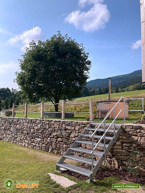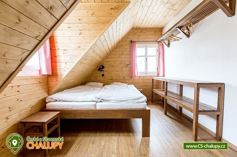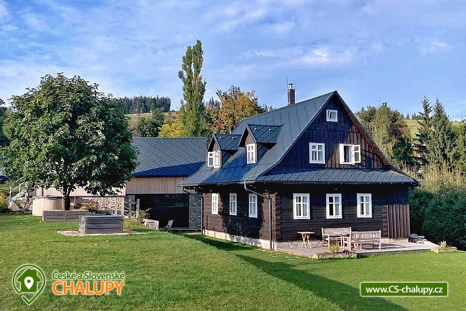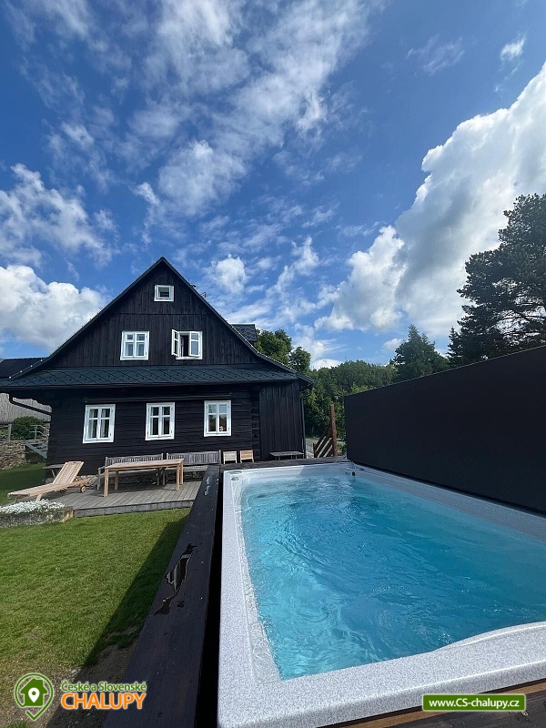 Wellness roubenka s bazénem - Kralický Sněžník. Pronájem stylové roubenky pro až 14 osob se luxusním wellness (vyhřívaný venkovní bazén s protiproudem a jeho součástí je vířivka + finská sauna a koupací sud). Roubenka poskytuje ubytování pro až 14 osob ve 4 ložnicích. Roubenka v tradiční architektuře horských chalup s moderním vybavením. POPIS: 3 pokoje v podkroví (na každém pokoji 1x dvoulůžko a 2x jednolůžko) a 1 pokoj v přízemí (1x dvoulůžko). V pokojích jsou věšáky na ramínka a policový úložný systém. Vlastní vaření v plně vybavené kuchyni. Kuchyň je vybavena sklokeramickou varnou deskou, el. troubou, lednicí (330 l), myčkou, mikrovlnou troubou, toustovačem, topinkovačem, mixérem, dostatečným množstvím nádobí. Další vybavení: TV, WiFi v celé chalupě, Bluetooth reproduktor Marshall, elektrický vysoušeč obuvi na 10 párů bot, pračka, mraznička (80 l), fén. Sociální zařízení - Přízemí: koupelna společně se sprchovým koutem a toaletou. Podkroví: koupelna společně se sprchovým koutem a toaleta odděleně. Vytápění: Elektrické podlahové topení, kanadská litinová kamna na dřevo, elektrické topné žebříky v koupelnách. Parkování: 4 parkovací místa na pozemku, v zimním období doporučujeme sněhové řetězy. Na pozemku u chalupy je uzamykatelná lyžárna/kolárna (možnost uskladnění až 14 kol), terasa se zahradním nábytkem, venkovní posezení s otevřeným ohništěm + gril na dřevěné uhlí, houpačka pro děti, wellness (sauna + koupací sud). Blízké okolí - výlety: Kralický Sněžník, Malý Sněžník, Vlaštovčí skály - chráněné bizarní skály a kamenné moře, Prudký potok - kaskády, Jízdárna Černý kůň - Staré Město, Aktivity park Krupá - Staré Město, Dolní Morava - Stezka v oblacích, Mamutíkuv vodní park - Adrenalin park - bobová dráha - dětský Fun park - půjčovna Segway - Single trails, Branná - zřícenina hradu Kolštejn, Hanušovice - Pivovarnické muzeum, V Hynčicích - jízda na koních, rybolov v místním rybníku, půjčovna - kol, elektrokol, lyží. Dále Přečerpávací elektrárna Dlouhé Stráně, Rejvíz Mechové jezírko, Kouty nad Desnou - letní lyžování + minikáry, Velké Losiny - zámek, Ruční papírny, Medvědí jeskyně (Polsko - Kletno) a Králíky - pevnost. Těšíme se na Vás u nás.