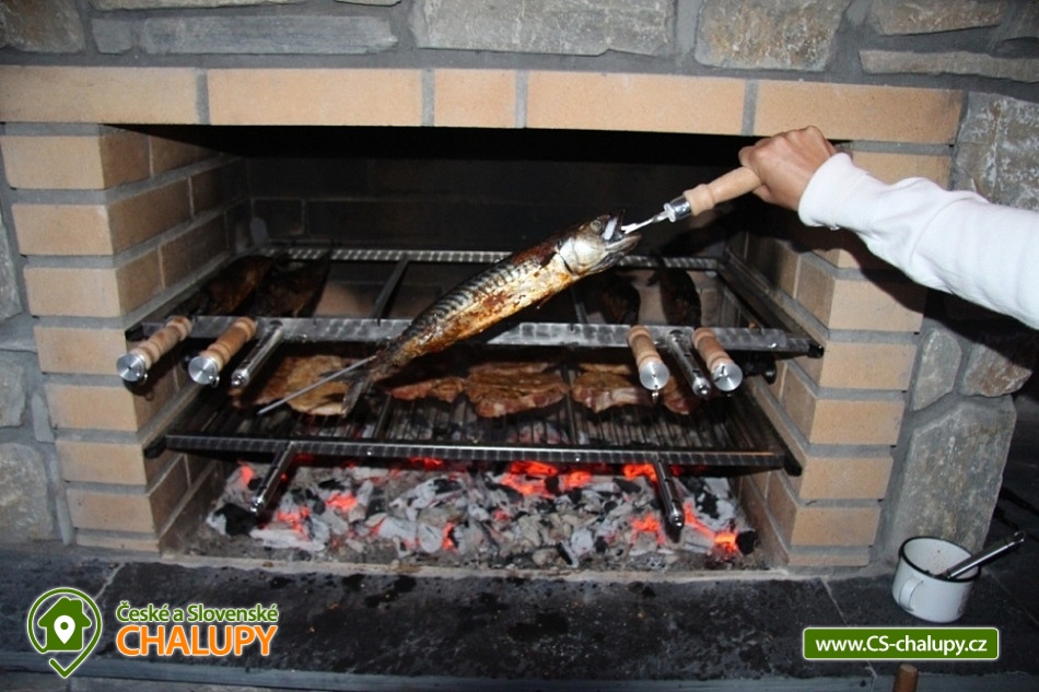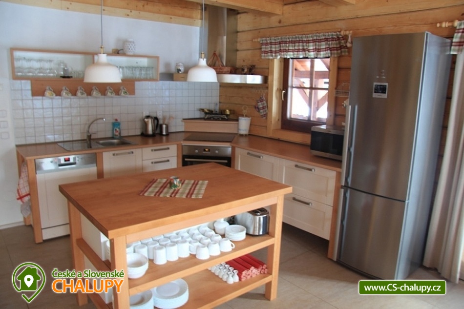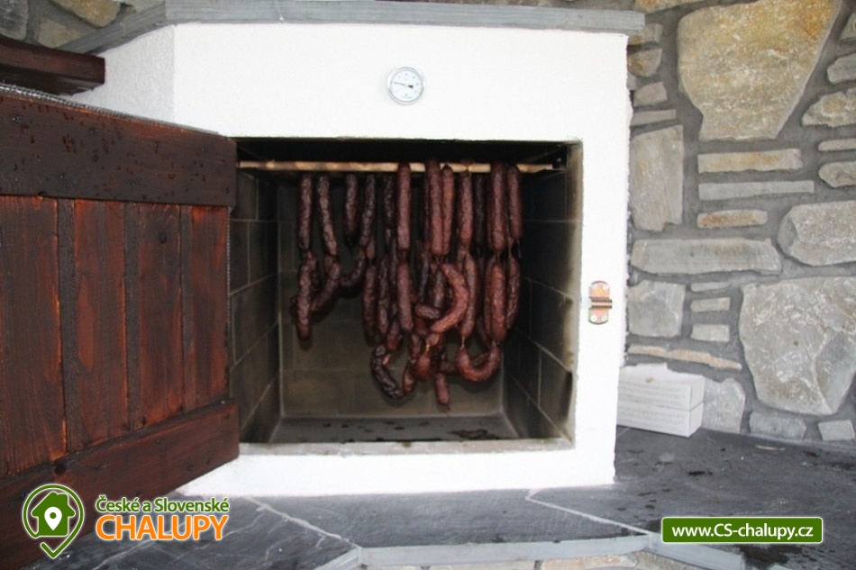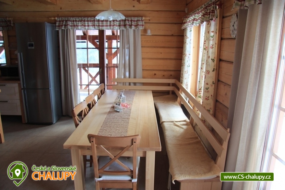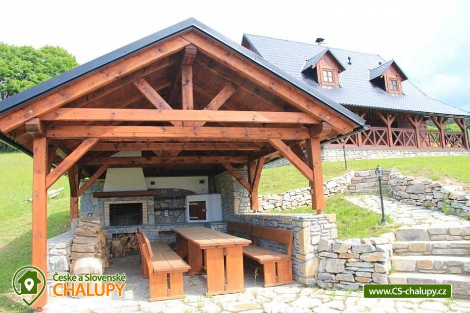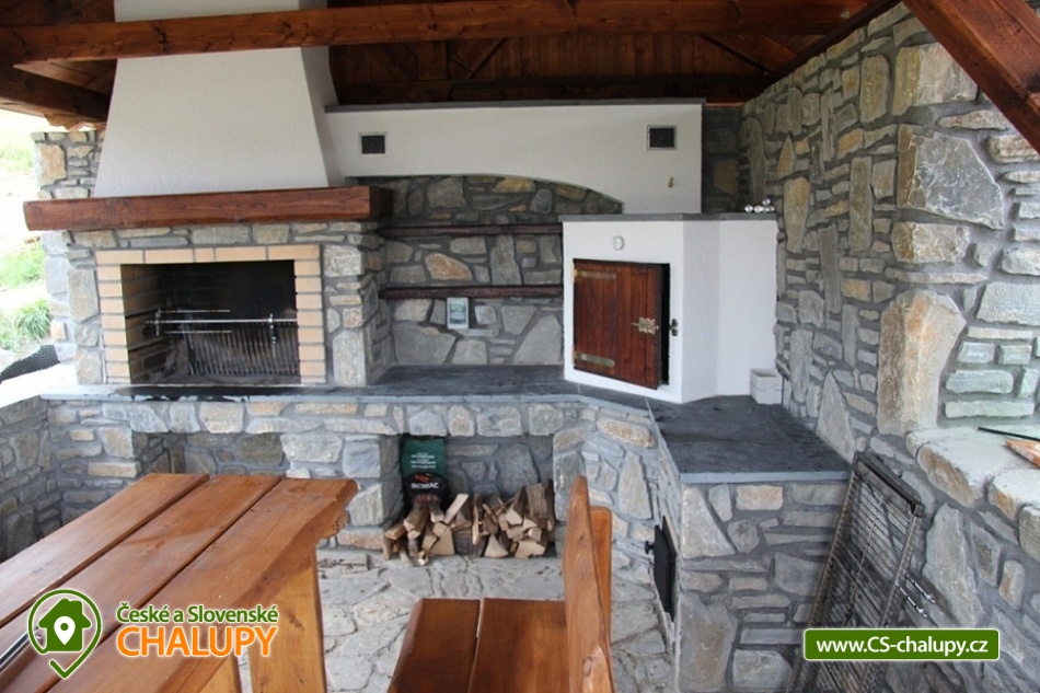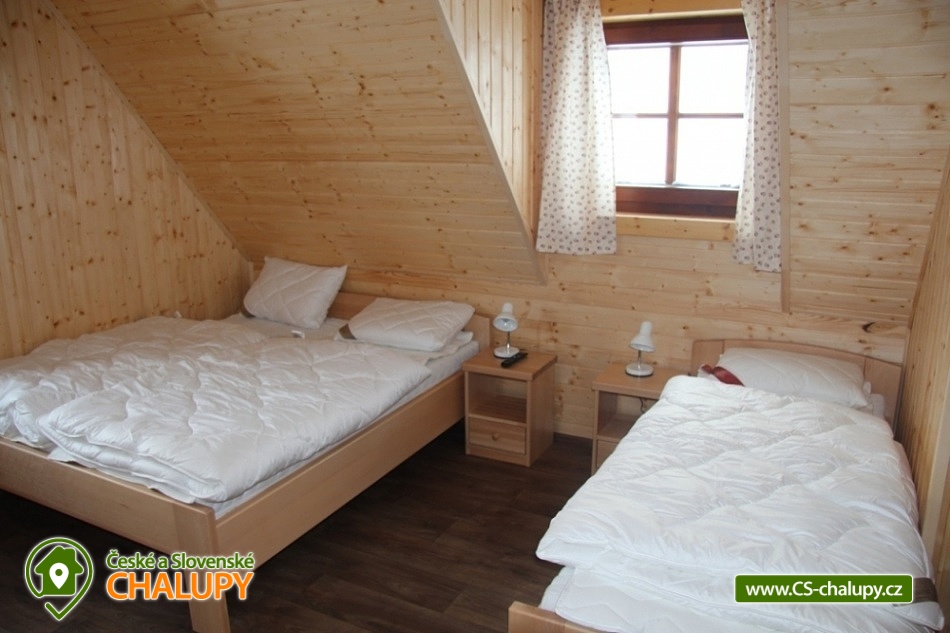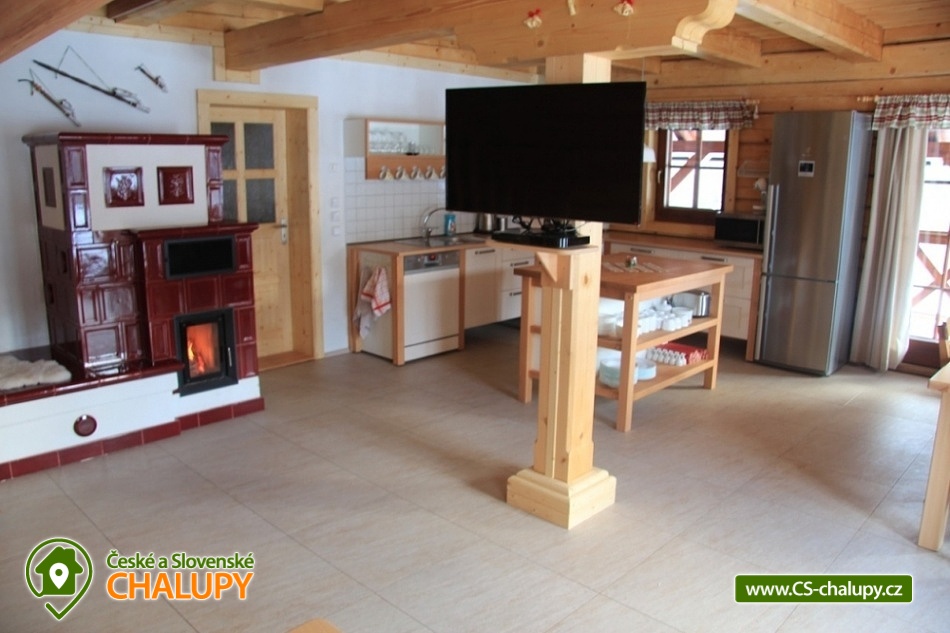 Roubenka Rozárka II - wellness with Finnish sauna and pool - Velké Vrbno. Cottage Rozárka II is located on the border of Hrubý Jeseník, Kralický Sněžník and Rychlebské mountains in the village of Velké Vrbno at an altitude of 820 m and is surrounded by beautiful nature with exceptionally clean mountain air. Inside the cottage can accommodate up to 15 people in five separate rooms on the first floor (2x4 and 1x3 beds) and attic (2x2 beds). On the ground floor there is a large living room with kitchen, a beautiful tiled stove with a bread oven and a seating area and a dining area. The kitchen is modernly equipped with an induction hob, dishwasher, microwave with grill, kettle and coffee maker with Dolce Gusto capsules. The living room has a comfortable corner sofa and a large TV with satellite reception. There is also a blue ray player for long winter evenings. The large bathroom has a Finnish sauna and a shower with a massage panel. The ski room has a wall-mounted radiator boot dryer and two stands for skis and snowboards. All rooms are equipped with TV and WiFi. For maximum comfort, there are three bathrooms. The building is heated by electric underfloor heating and tiled stove. The chalet has its own well. Water from a depth of 56m has the parameters of baby water. In summer, a 7 m long pool heated by a heat pump is available for both log cabins. In addition to the log cabin, there is also a covered seating area with a fireplace and a smokehouse and a children's playground. The outdoor covered seating area with a fireplace and smokehouse works great. In 1 to 2 hours, sausages and sausages are perfectly used. The smoking of partially pre-fried meats is done in 8 to 10 hours. The cottage is located between the slopes of the Paprsek-Olšanka Ski Resort. On the left side it is 80 m away from the two-seater cable car to Paprsek, on the right side there is a ski lift Olšanka 800 m long at a distance of 60 m. At the boarding station to the chair lift there is a large mountain hut Vindoška. Here it is possible to eat during the operation of the lift. Mountain cottage Paprsek at an altitude of 1022 m is open all year round. The area has four slopes with lengths of 800-1300 m and the largest SNOW PARK in the Czech Republic. There is a ski school and a school, as well as ski and snowboard rental. The area is groomed several times a week by over 70 km of cross-country ski trails, including ski trails in Poland. In summer, it is possible to use the many cycling routes in the area or enjoy the peace and quiet of this location and take trips to the near or distant surroundings.