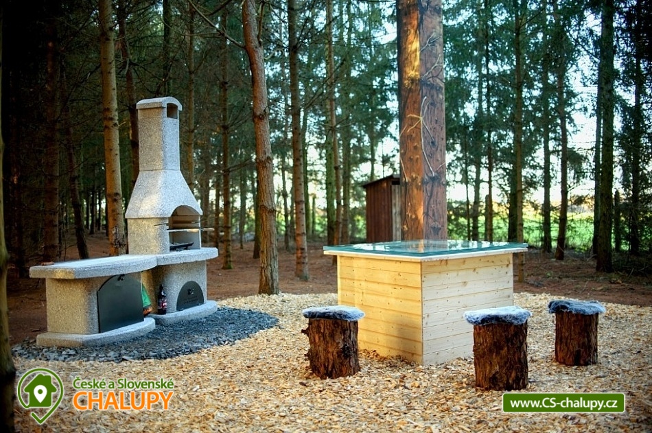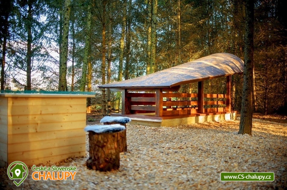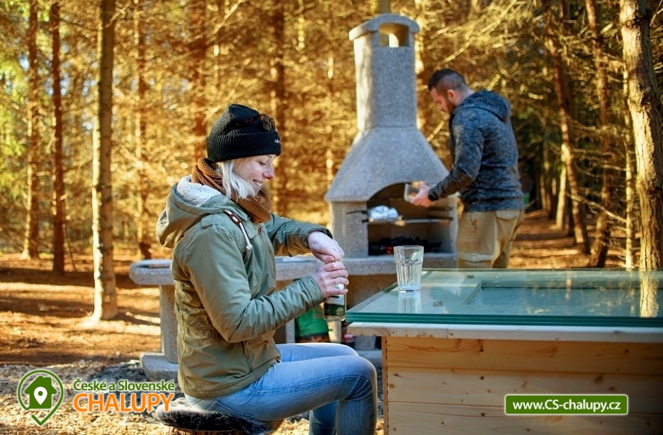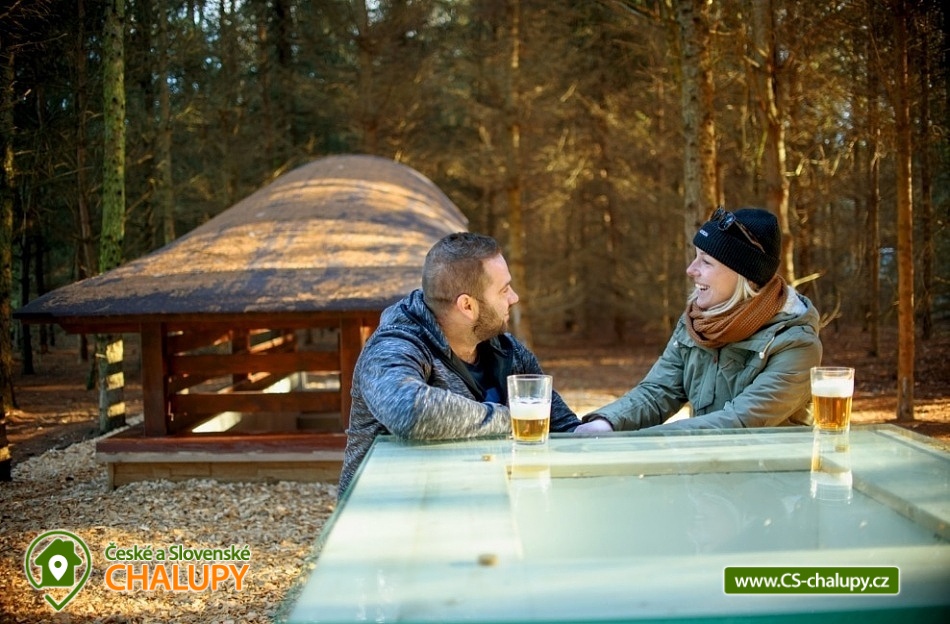 Zemljanka – Experience accommodation - glamping Vysočina. In the dugout for 2 people there is a small kitchen with a gas stove, where you can prepare coffee or tea. It is a dwelling buried in the rock underground, inspired by the primitive way of living from the very beginning of our civilization. Our ancestors often used caves, underground cavities or spaces left by uprooted trees for living, which they modified in various ways and improved over time. This is what inspired us to build a similar dwelling, where you can treat yourself to a glass of wine in the warmth of the stove and the kerosene and spend an unforgettable night. Outside, there is a fireplace ready for you, where you can grill the best specialties of our chef. Not far from the dugout, there is a forest bathroom ready for you, where you can treat yourself to a hot shower even in the bitterest of frosts. We offer a coffee package or a variety of teas for your stay. The accommodation provides free parking and you can also reach us by train or bus within walking distance. The property is located in the woods between the towns of Golčův Jeníkov, Chotěboř and Seč. The exact location is confidential and will be communicated to you after booking. The surroundings offer you beautiful nature, which is perfect for hiking, cycling and mushroom picking. Near our accommodation is the town of Golčův Jeníkov. In this city you can visit the Loreto chapel, the Jesuit residence and the Golč fortress. There is also a Jewish synagogue and a Jewish cemetery. The town of Třemošnice is located near our accommodation. In it you can visit the Limestone Museum, the Agricultural Museum and Berl's Limestone. In the vicinity of the accommodation there is also a cycle path that takes you to the Doubrava Nature Park. We look forward to seeing you here.